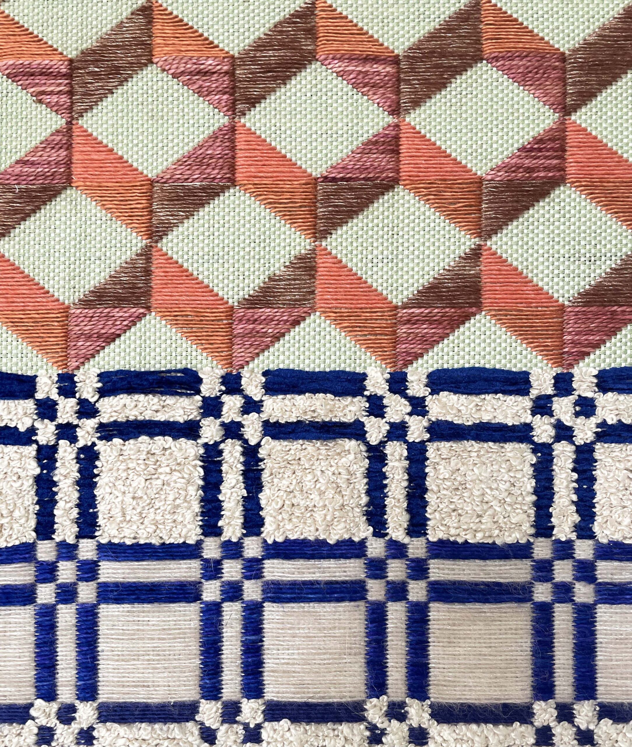 Meghan Spielman’s series of hand-woven artworks “Windows and Doors” distills and magnifies the iconography of historical American coverlets and quilts while also evaluating our complex relationship with domestic craft heirloom objects.