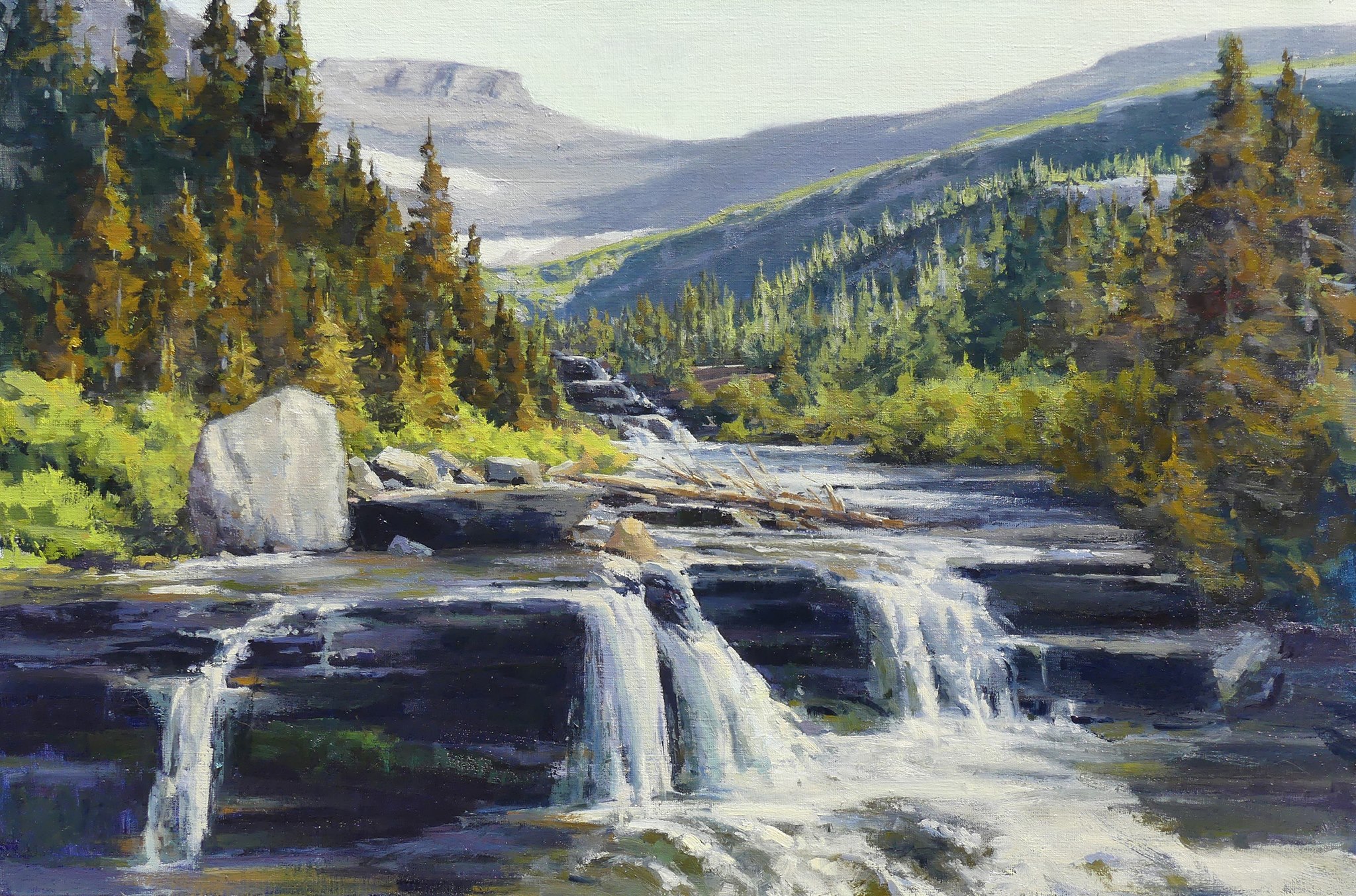 Kate Starling, Falls on Lunch Creek, oil on linen, 24″ x 36″