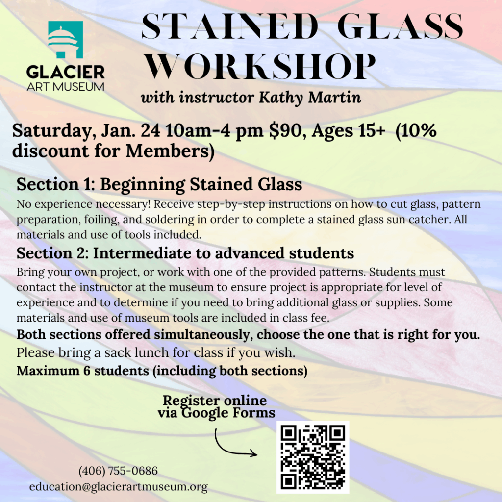 If you have an idea for a class or workshop that you would like to propose to the Hockaday, please fill out the form below and send it to info@glacierartmuseum.org, or mail it to us at 302 2nd Ave E, Kalispell, MT 59901.